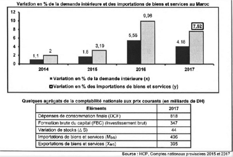 Exercice 2 sur les agrégats – Économie générale et statistique 2 Bac Auteur/autrice de la publication :FouadM Commentaires de la publication :0 commentaire Travail à faire :1) Lisez la donnée en gras encadrée 7,62% 2) Interprétez l’évolution de la demande intérieure. 3) Calculez et lisez pour 2017 la demande intérieure et le PIB Voir la correction ici Laisser un commentaire Annuler la réponseCommentEnter your name or username to comment Enter your email address to comment Saisir l’URL de votre site (facultatif) Enregistrer mon nom, mon e-mail et mon site dans le navigateur pour mon prochain commentaire. Vous devriez également aimer Présentation du programme en comptabilité et mathématiques financières – 2Bac sciences économiques 3 août 2023 Le chômage 30 juillet 2023 La croissance de l’entreprise : Définition, objectifs et mesures 7 août 2023