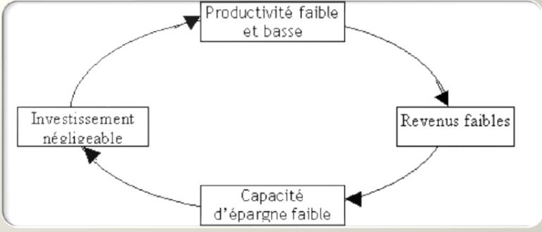 Les pays sous-développés souffrent d’une faiblesse structurelle des revenus qui se traduit d’une part, par la faiblesse de la demande engendrant une faiblesse de la production et des revenus en conséquence, d’autre part, cette faiblesse des revenus conduit à une insuffisance de l’épargne pénalisant l’investissement et partant la production. De ce fait les revenus restent faibles ce qui bloque le développement de ces pays.