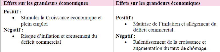 - Les actions de la politique monétaire